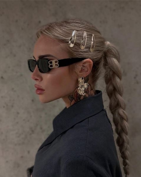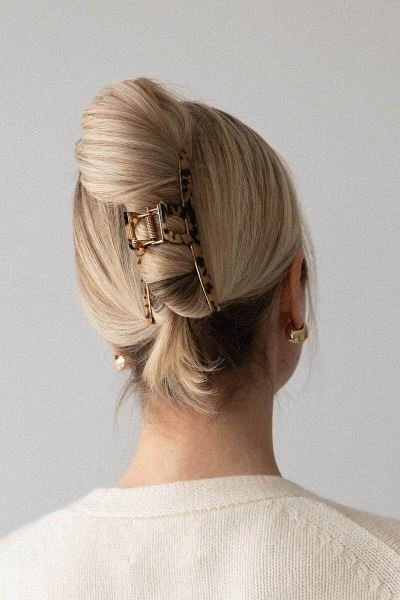 Крупные заколки возвращаются как удобное и стильное решение на каждый день. Волосы скручиваются в свободный жгут и фиксируются крабиком. Не стремитесь к идеальной аккуратности, она тут не нужна. Концы можно оставить наружу — это добавляет легкости. Подойдут как простые однотонные крабики, так и более выразительные варианты с декором.