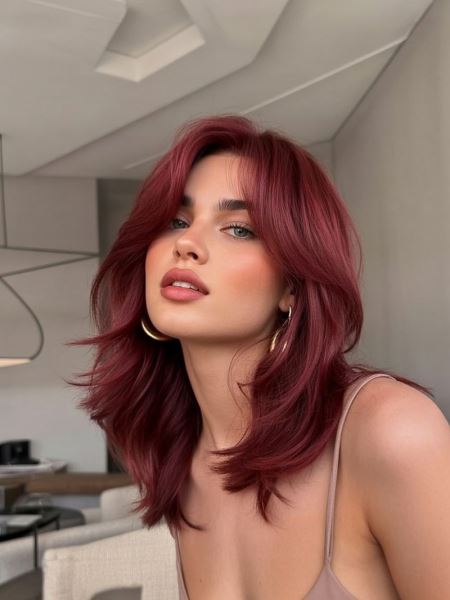 Красные оттенки продолжают оставаться одними из самых ярких трендов. При этом каждый сезон меняется их подтон. Весной 2026 особенно популярны глубокие вишневые и бордовые оттенки. Один из самых обсуждаемых вариантов — цвет «вишневая кола», который сочетает темный коричневый и насыщенный красный. Оттенок уже примерили многие знаменитости, включая Дуа Липу и Меган Ти Сталлион. Цвет выглядит выразительно и немного драматично, но при этом остается достаточно благородным.
