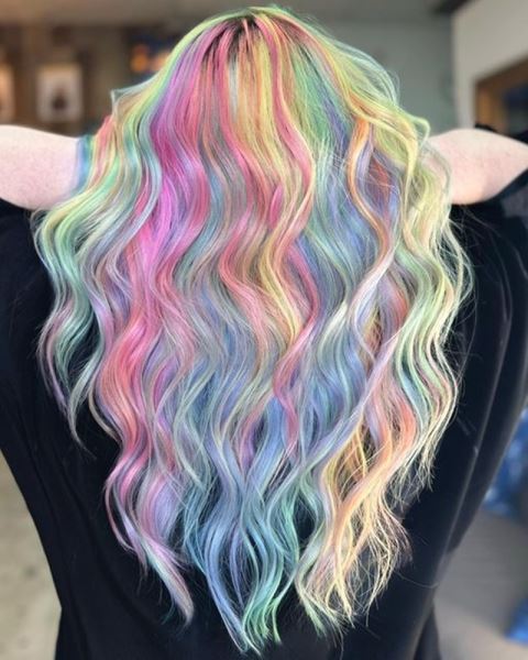 Для любителей ярких экспериментов весна 2026 предлагает голографическое окрашивание. Оно выглядит особенно эффектно на светлых или пепельных волосах. Суть техники заключается в том, что отдельные участки волос окрашивают в разные оттенки небольшими горизонтальными зонами. Часто используются неоновые цвета. В результате волосы переливаются на свету и создают эффект голограммы. Такое окрашивание привлекает внимание и подходит тем, кто любит нестандартные решения.