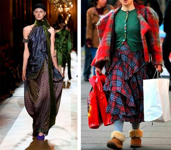 Когда в одном образе сталкиваются три разных принта, четыре контрастные фактуры и несколько стилевых направлений, он начинает «кричать», вызывая подсознательное беспокойство.