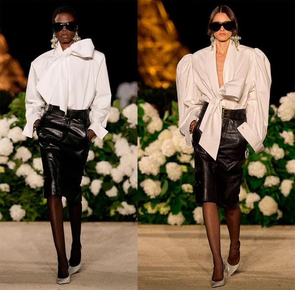 Еще один выразительный образ в романтическом стиле, но уже с рубашкой. Да, романтика – это не всегда воздушность и легкость ткани. Современный романтический стиль подчеркивает не только нежность и хрупкость женщины, но и ее силу и уверенность, а иногда и то, и другое одновременно. И все это удалось дизайнерам Saint Laurent, Sergio Hudson, в коллекциях которых образ с рубашкой необычайно лёгкий и притягательный.