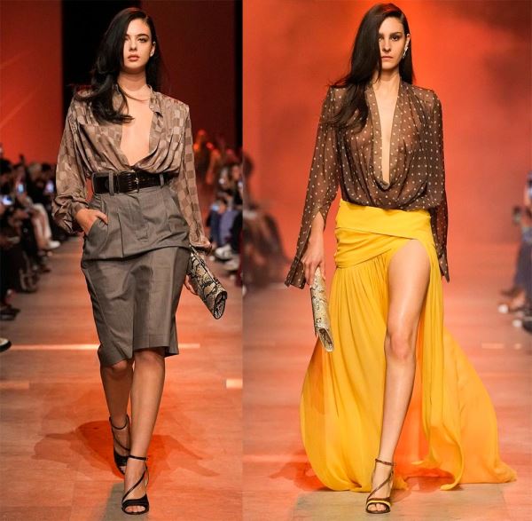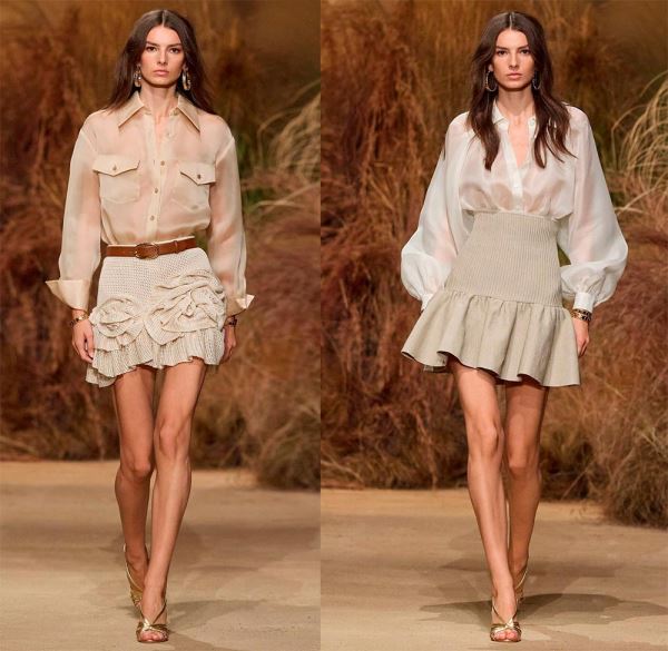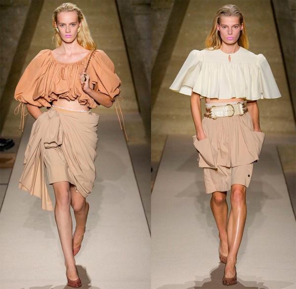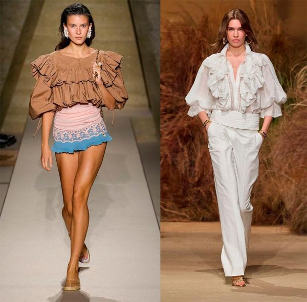 По-разному подошли бренды и к выбору ключевых составляющих романтической блузки. Например, Chloé выбрали объемные драпировки и объемные рукава, для Elie Saab неотъемлемыми составляющими стали полупрозрачные фактуры, глубокий вырез и практически невесомый воротник хомут, а для Valentino – блузки в ретро-стиле с акцентной линией плеч, драпировками, вышивками, воланами, но при этом с удлиненными манжетами.