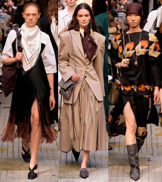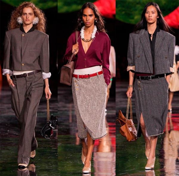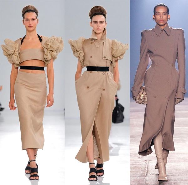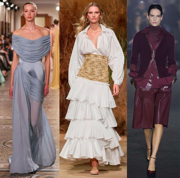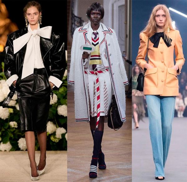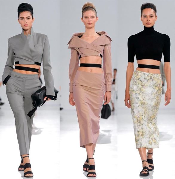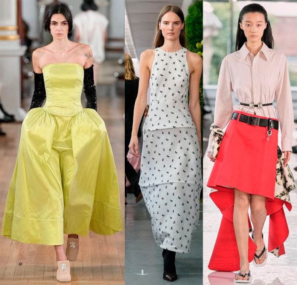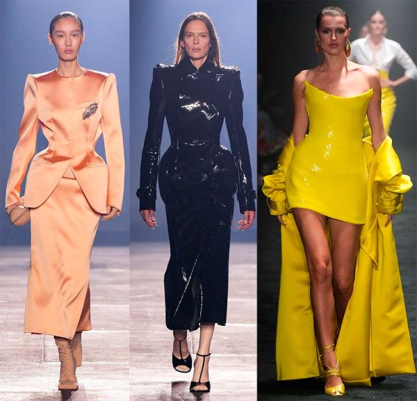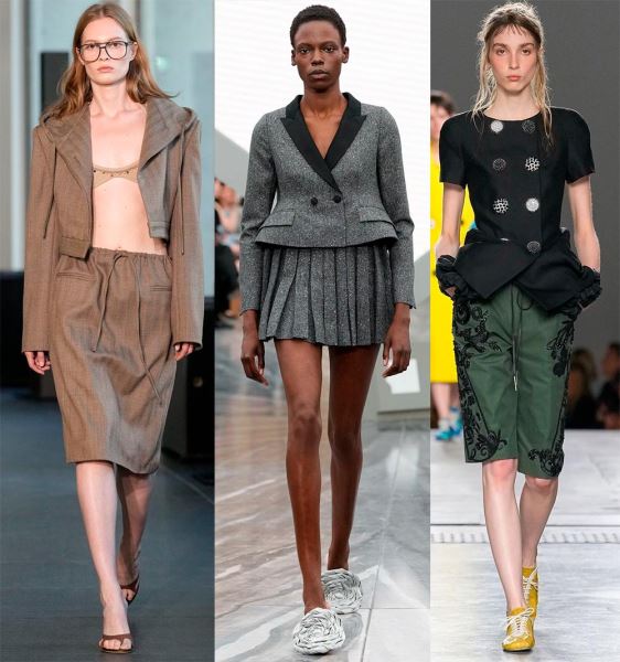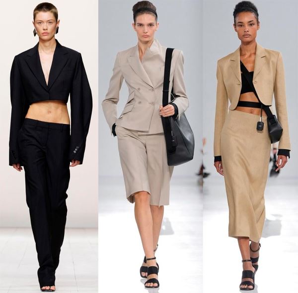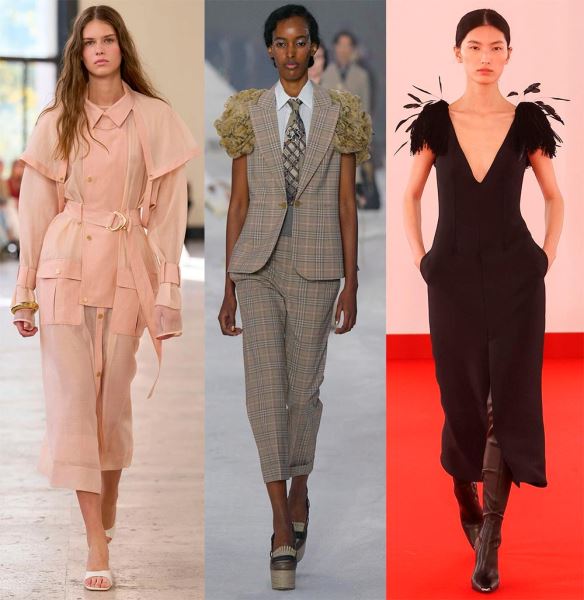 Возрождается низкая посадка, экстремально короткая длина, короткие приталенные жакеты, делается акцент на плечи, но это уже не только объемные плечи в мужском стиле, а своеобразные способы кроя или декора. Современные структурированные объемы подчеркивают выразительность силуэта и сохраняют свободу движений. Однако вы будете в тренде, если обратите внимание на образы с естественными женственными пропорциями.