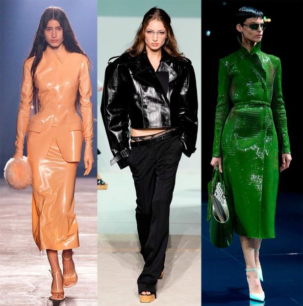 В весенне-летний сезон еще не раз потребуется теплая одежда, и здесь помогут кожаные вещи. Но если хотите быть в тренде, самое время приобрести изделия из глянцевой кожи, которая будет главным материалом сезона. Вы можете выбрать глянцевый пиджак или юбку, пальто или платье, а черный пиджак из глянцевой кожи будет ключевым элементом сезона 2026. Кожаный пиджак позволяет создать не только строгие, деловые комплекты, но и расслабленные, повседневные.