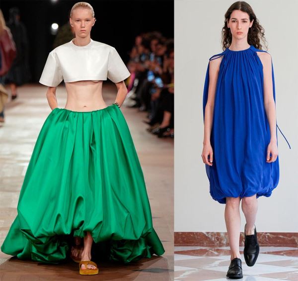 Еще один уникальный силуэт – платье или юбка-баллон. Какими эти вещи будут у вас – зависит от вашего выбора, а разнообразных моделей в коллекциях 2026 оказалось немало…. Здесь вы увидите и мини платья-баллоны, и макси, и миди. Но чтобы выглядеть эффектно в таком платье, необходимо тщательно подойти к выбору модели, так как платье-баллон изменяет пропорции фигуры, поэтому оно может подчеркнуть не только достоинства, но и недостатки.