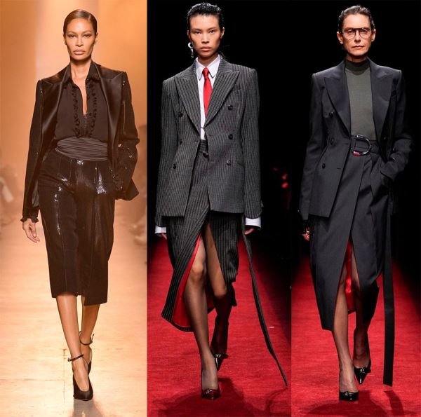В моде деловых костюмов по-прежнему остается оверсайз, но возвращаются и приталенные пиджаки, и укороченные брюки. Однако вы должны одеваться так, чтобы произвести впечатление. Современный и стильный костюм можно найти в коллекциях: Ferrari, Givenchy, Michael Kors.
