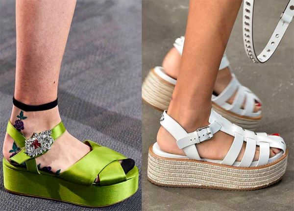 Помимо обуви с платформой, актуальны модели на широкой подошве и плоской танкетке, как мы носили в 90е. Подошва может быть из ротанга или пробки, плетеная или кожаная — это абсолютно неважно, модным будет любой вариант. Главное, при выборе обуви с платформами и танкетками — ходить аккуратно и беречь лодыжки.