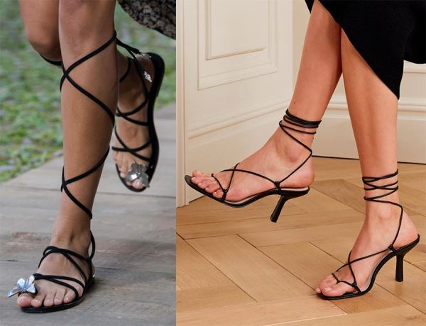 Можно повязать длинные ремешки вокруг голени — босоножки в греческом стиле снова в моде. А плетеные сандалии в гладиаторском стиле стали одним из основных трендов сезона.