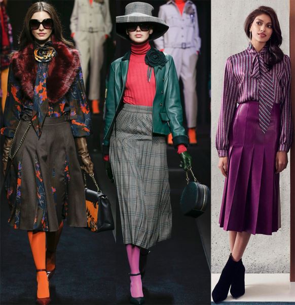 Особо хотелось бы отметить, что в осенне-зимнем сезоне нас согреют юбки из плотного и теплого материала, которым может стать, прежде всего, твид, шерсть, шерстяной трикотаж, замша и кожа. Все они имеют достаточно простой крой и длину миди или даже макси.