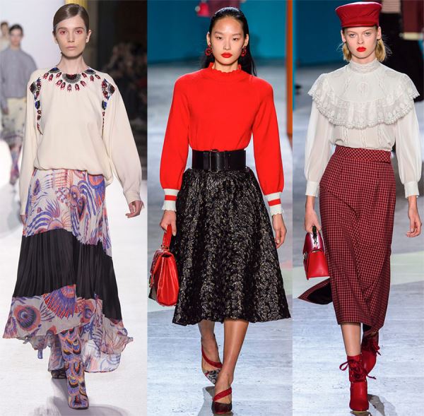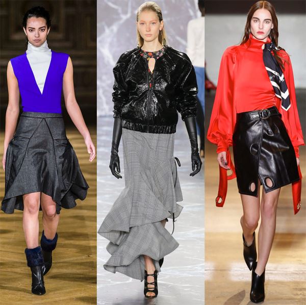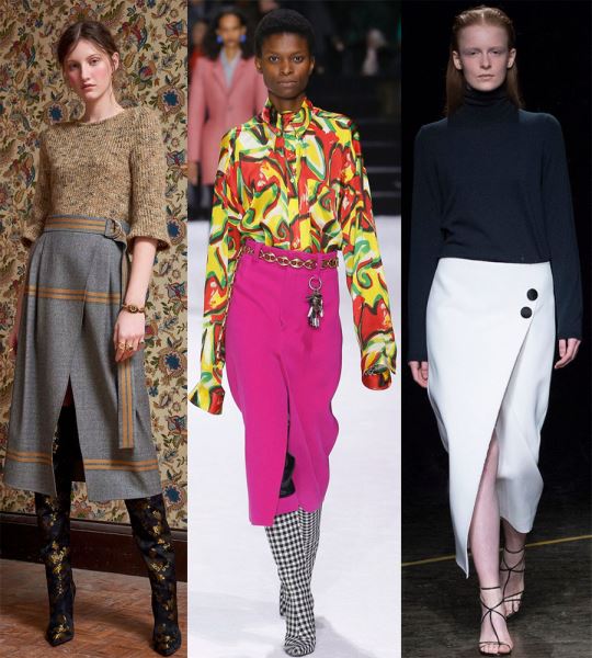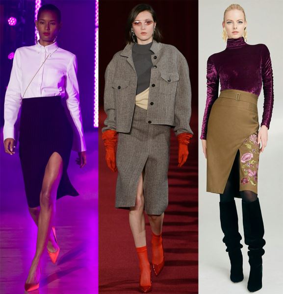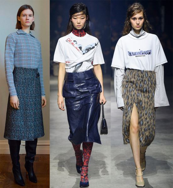 Многие дизайнеры остановили свой выбор на юбках-карандашах, простом прямом крое, мягких бантовых складках, складках, напоминающих школьную форму, плиссировке, на сборке по линии талии, клеше. Наибольшую популярность приобрели юбки с разрезами, в основном в «карандашах», и юбки с запахом.