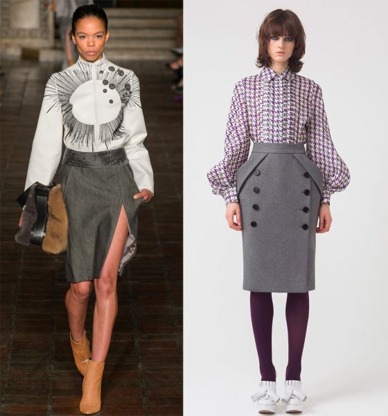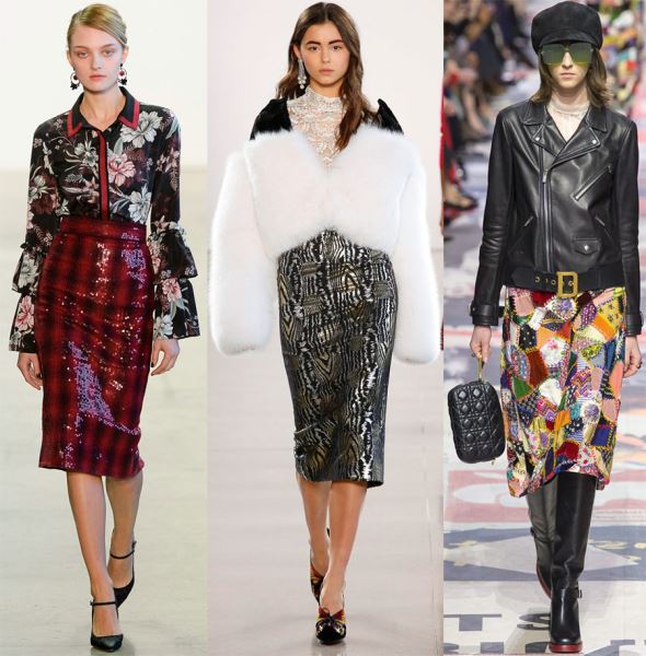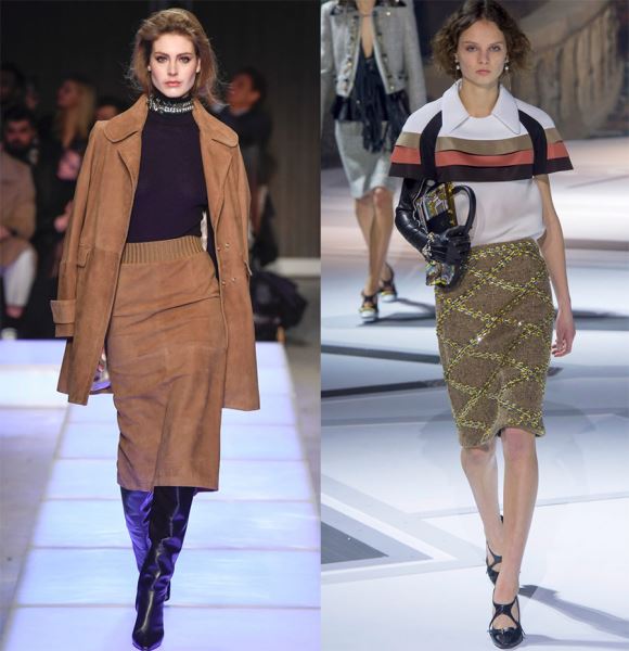 Дизайнер известного бренда Louis Vuitton представил не один образ, используя при этом юбку-карандаш из плотной и теплой ткани, а Christian Dior создал образы с юбкой, выполненной в технике пэчворк.