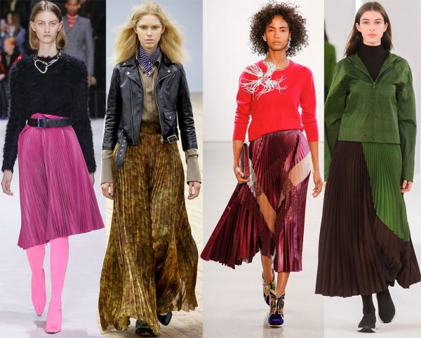 Складки могут быть разными по ширине. Выбор зависит от вашей фигуры, как впрочем, и длина юбки, что визуально изменит ваши пропорции. Дизайнеры предлагают модели в складку на любой вкус и стиль.