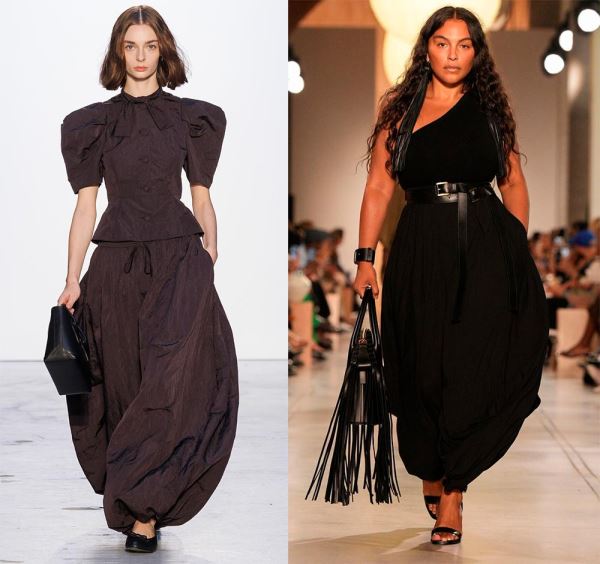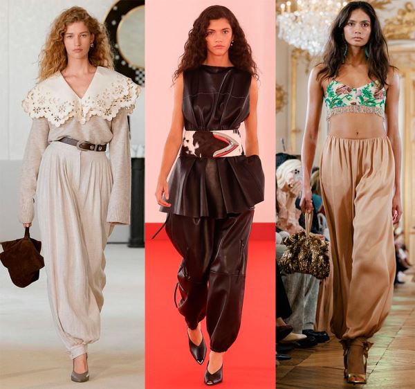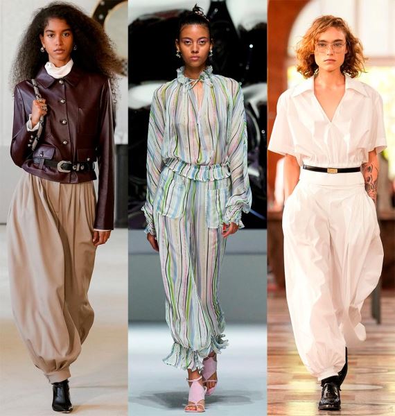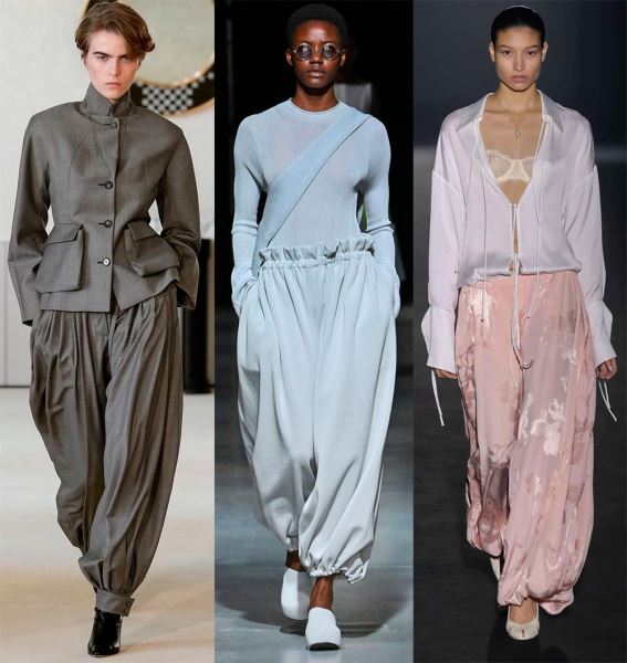 Тренд на свободные и комфортные брюки-шаровары подхватили многие бренды, среди которых Altuzarra, Brandon Maxwell, Emporio Armani, Kobi Halperin, Michael Kors и другие.