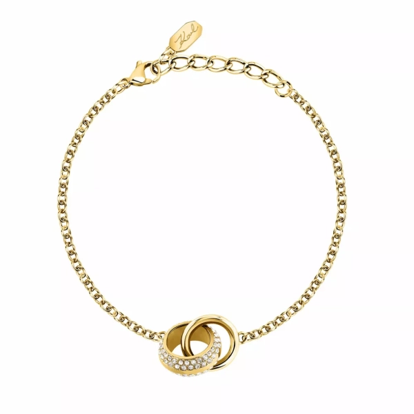 Символичные украшения занимают в ювелирном гардеробе особую роль, напоминая о дорогом сердцу человеке или событии. Например, этот браслет из новой весенне-летней коллекции украшений KARL LAGERFELD может стать идеальным подарком на годовщину отношений. Два соединенных кольца, одно из которых дополнено паве из кристаллов, напоминают знак бесконечность и чувства, неподвластные времени.