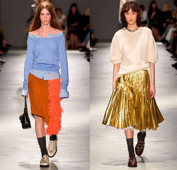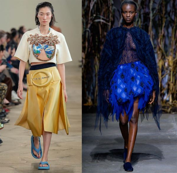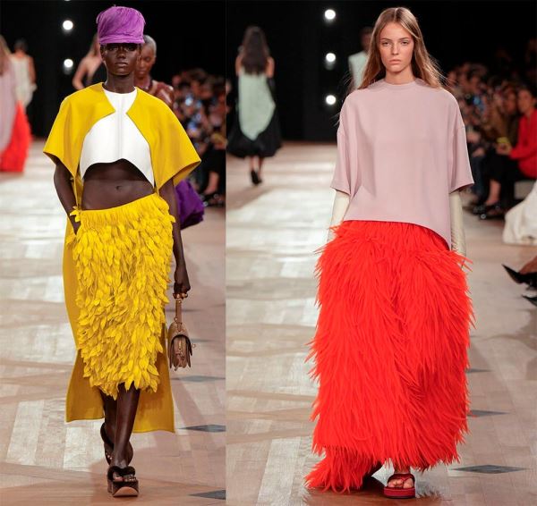 Хотя возможны исключения, в случае если верх является комплектной вещью, и вместе они создают раздельное платье. Такие вещи можно носить вместе и порознь. Если верхняя часть не является укороченным топом, то верх и низ сливаются в единое платье. Таких комплектов тоже не мало на Неделях моды, но они заслуживают отдельной публикации, сегодня же обратим внимание только на юбки.