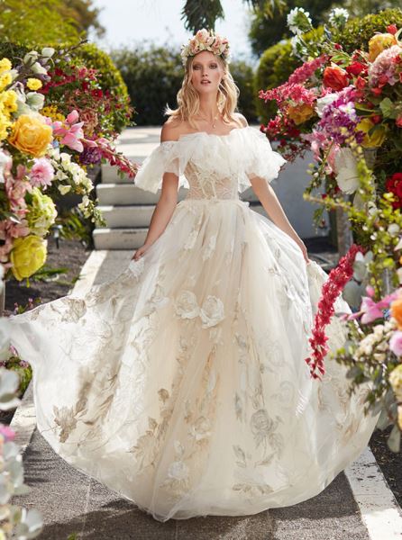 Стиль милитари много лет не сдает своих позиций и в ближайшем будущем не утратит популярности. Дизайнеры активно сочетают военную тему с женственностью и романтичностью. В коллекциях встречаются платья с пышной юбкой из ткани с камуфляжным принтом. Но найти такое свадебное платье в продаже задача сложная.