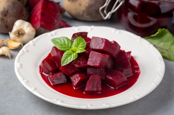 1. Свёклу очистите, нарежьте ломтиками и плотно уложите в банку.