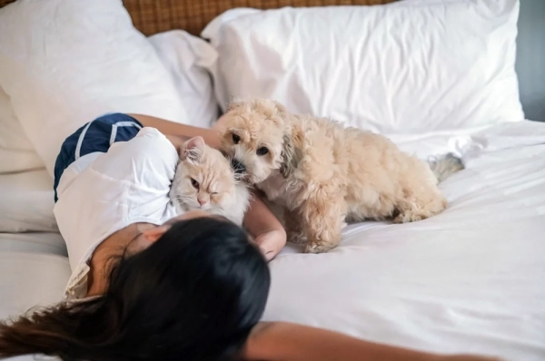 По данным исследований, почти половина владельцев домашних животных (около 45–60%) спят в одной кровати со своими питомцами. С собаками делят постель примерно 45–55% хозяев, а с кошками — до 62%. Участники опросов отмечают, что так они лучше засыпают. Однако эксперименты показывают, что их сон часто более прерывистый, в результате человек может хуже высыпаться, хотя и не осознавать этого. Так стоит ли пускать кота или собаку в свою постель?
